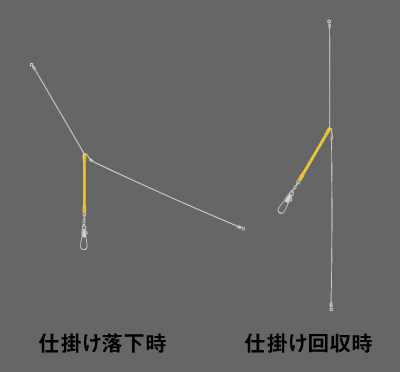 道糸から仕掛けまでが一直線になるため水の抵抗が少なく仕掛けが素早く回収できる。