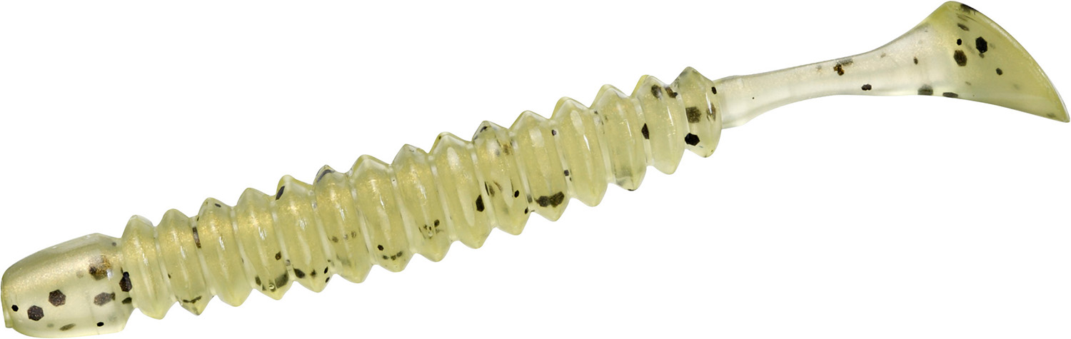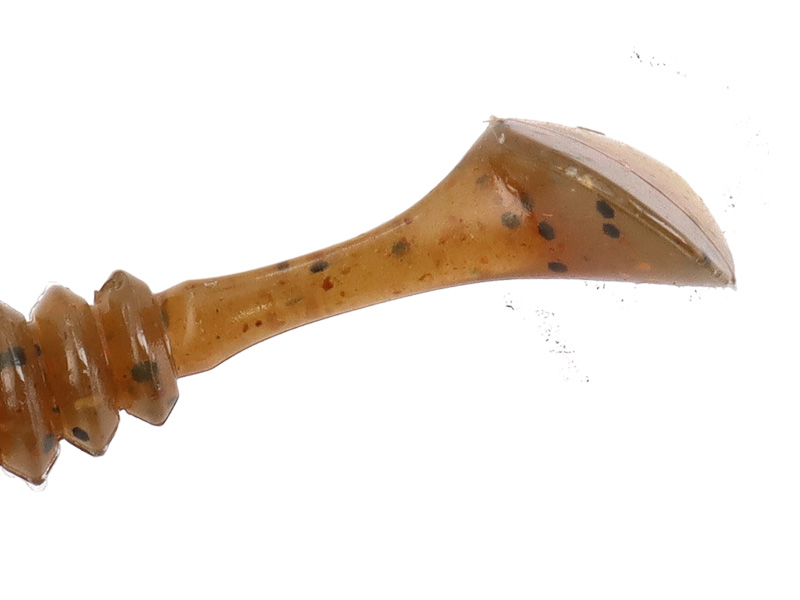 低速~高速まで対応した肉 厚テール。通常のシャッドテールと異なり、テール部分までウエイトがあるため、小さくてもトルクのあるアクションが可能。