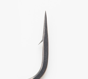 タチウオの硬い口を貫くハイカーボン素材でゲイプ部を平打ち加工行い、高強度フックとなっている。