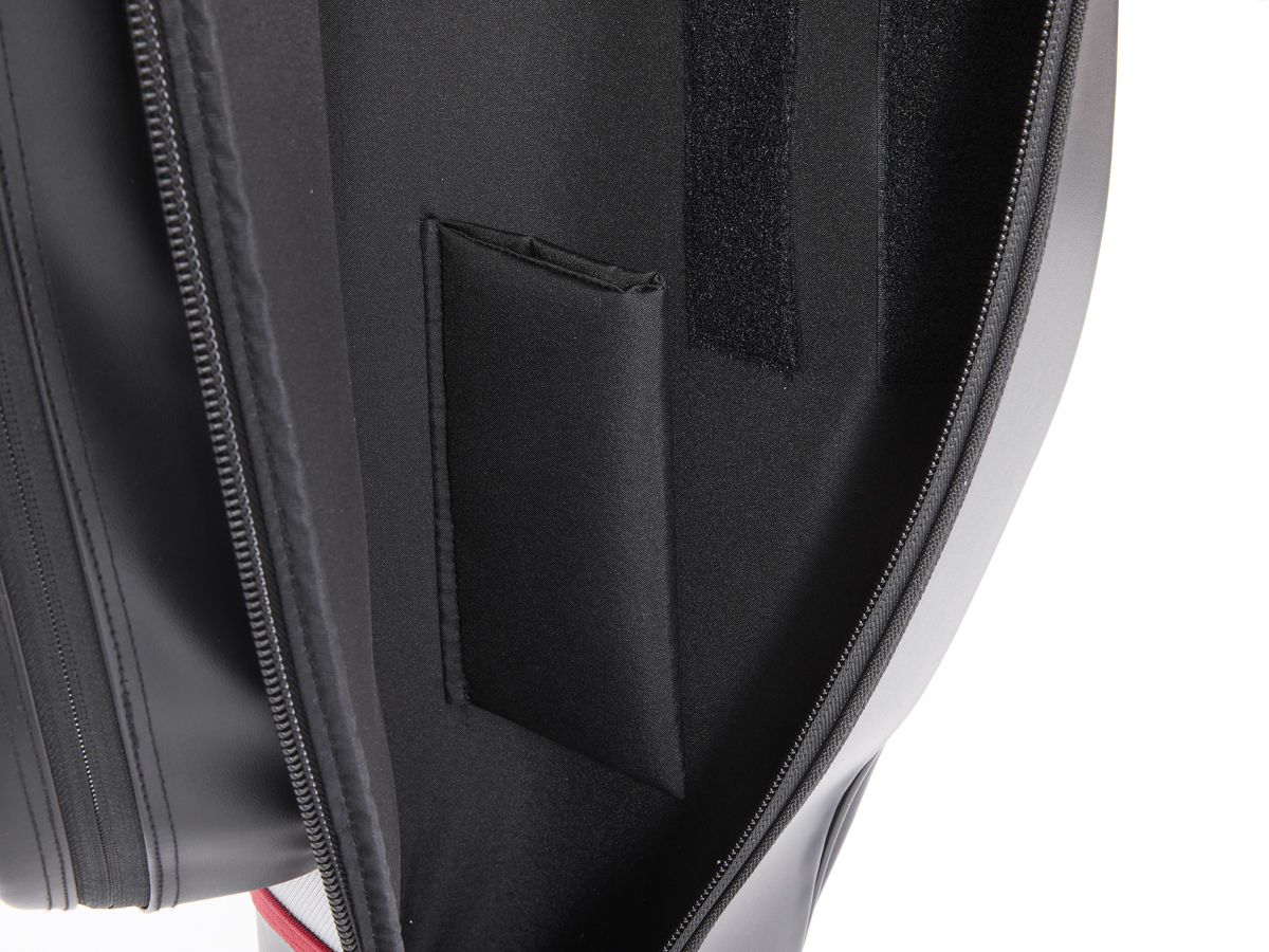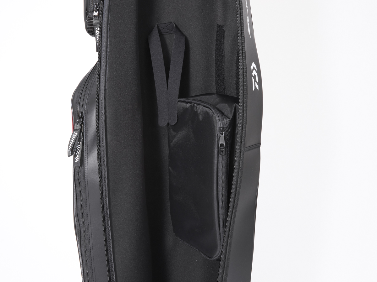 内部には小物収納可能なポーチやロッド固定ベルト付き。