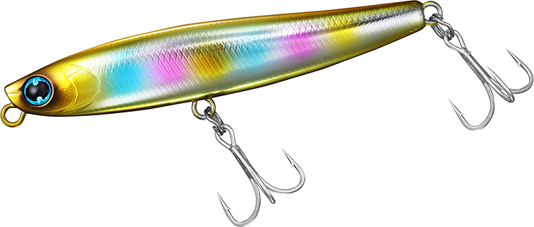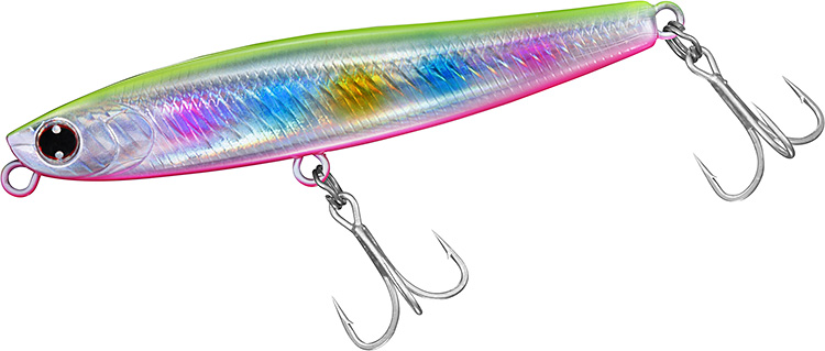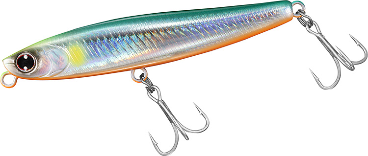 向かい風や横風、爆風時、ここ一番の遠投のために開発したヘビーシンキングペンシル。「飛距離第一主義」をコンセプトとし、ジグ級に飛ぶので、ミノーでは届かない遠くのボイルや潮目も射程範囲内。浮き上がりも早く、大河川、サーフ、干潟、磯、河口等の水面直下やシャローエリアを昼夜問わず攻略する。