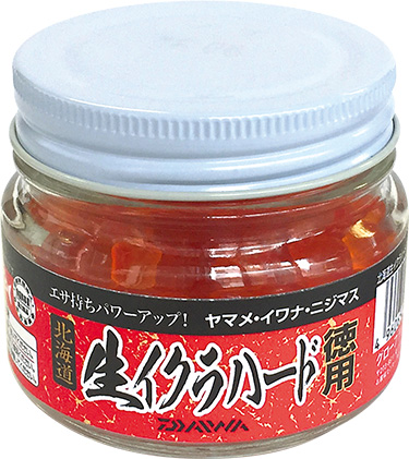 「北海道生イクラ ハード」はエサ持ちの良さを重視したハードタイプ。流れのあるポイントでもしっかりハリ残りし、確実に食い込ませる。