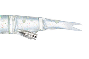 タダ巻き時は、尻尾をわずかに振りながら小魚が弱々しく泳ぐ姿を演出。リーリングを止めれば、ボディを震わせながらフォールし、メバルに口を使わせる。