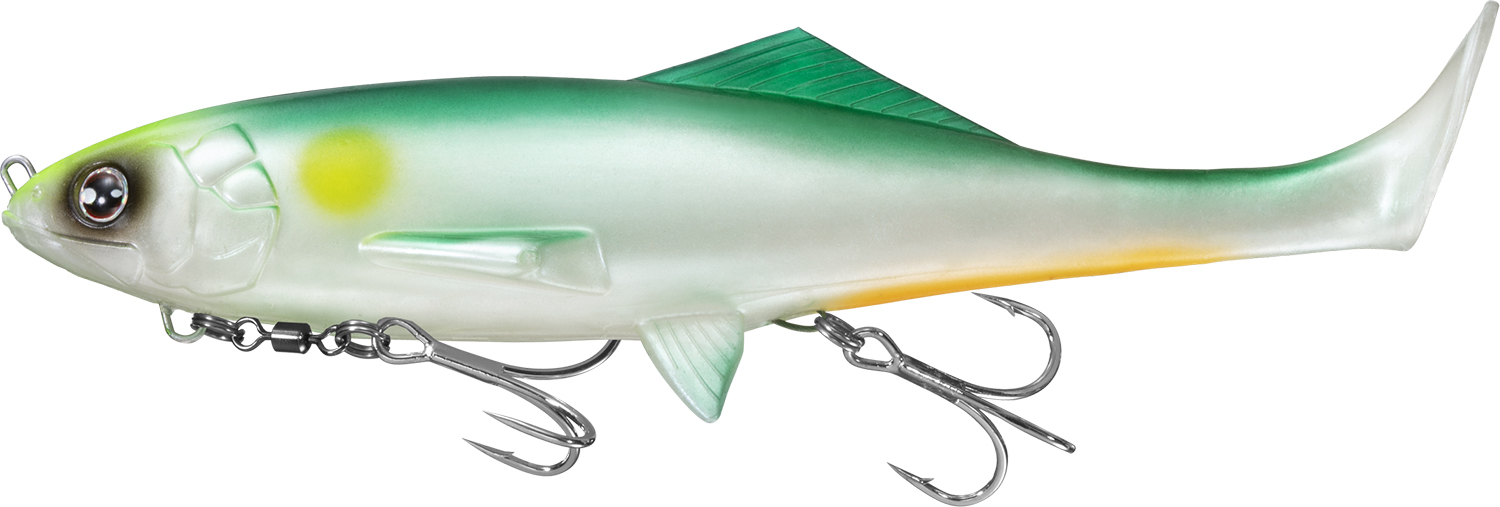 落ち鮎やコノシロといった大型のベイトに焦点を当てたフローティングスイムベイト。特に落ち鮎パターンでの威力が高く、弱って流される落ち鮎をリアルに再現してくれる。