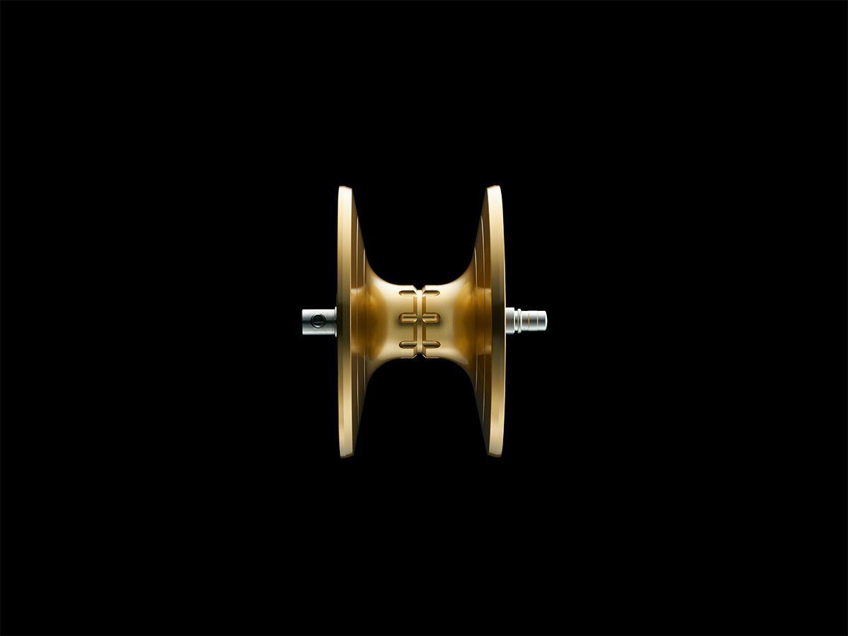 スプール形状は、ライン放出による巻きスピードの変化量まで考慮したベストバランスを実現。巻糸変化量が最適だからこそ、適正なドラグ性能を発揮し、軽い巻き上げや間合いを詰める巻き取りパワーに寄与する。