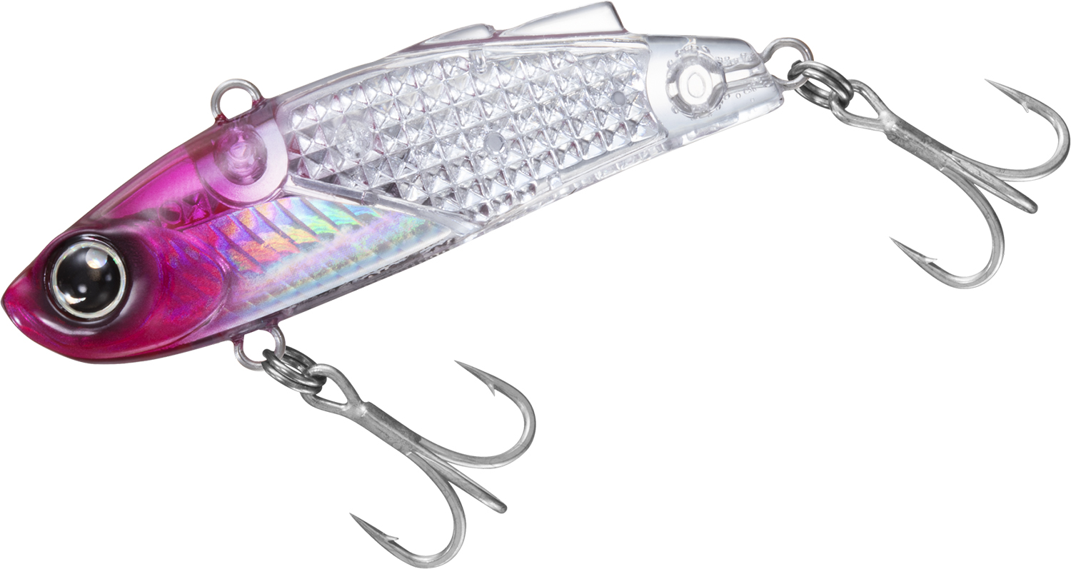 従来のバイブレーションのような、極端にフラットで薄いボディを必要とせず、丸みのあるぽっちゃりボディの採用によって、まるでピストルの弾のように飛んでいく直進性をもち、横風や向かい風などにあおられ、姿勢が崩れようとも大きく飛距離を落とさない優れたボディバランスを実現。