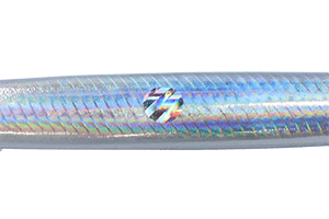 魚皮を科学したアデルホログラムとロングジグでそれぞれ効果の高い様々なホログラムを組み合わせたホロデザインを採用。違うパターンを組み合わせることで近くから遠くまで幅広くアピール。交互に変化するホロのフラッシング効果がターゲットを狂わせる。ボディ中央には裏面のホログラムパターンシールを配しており、わかりやすい設定になっている。