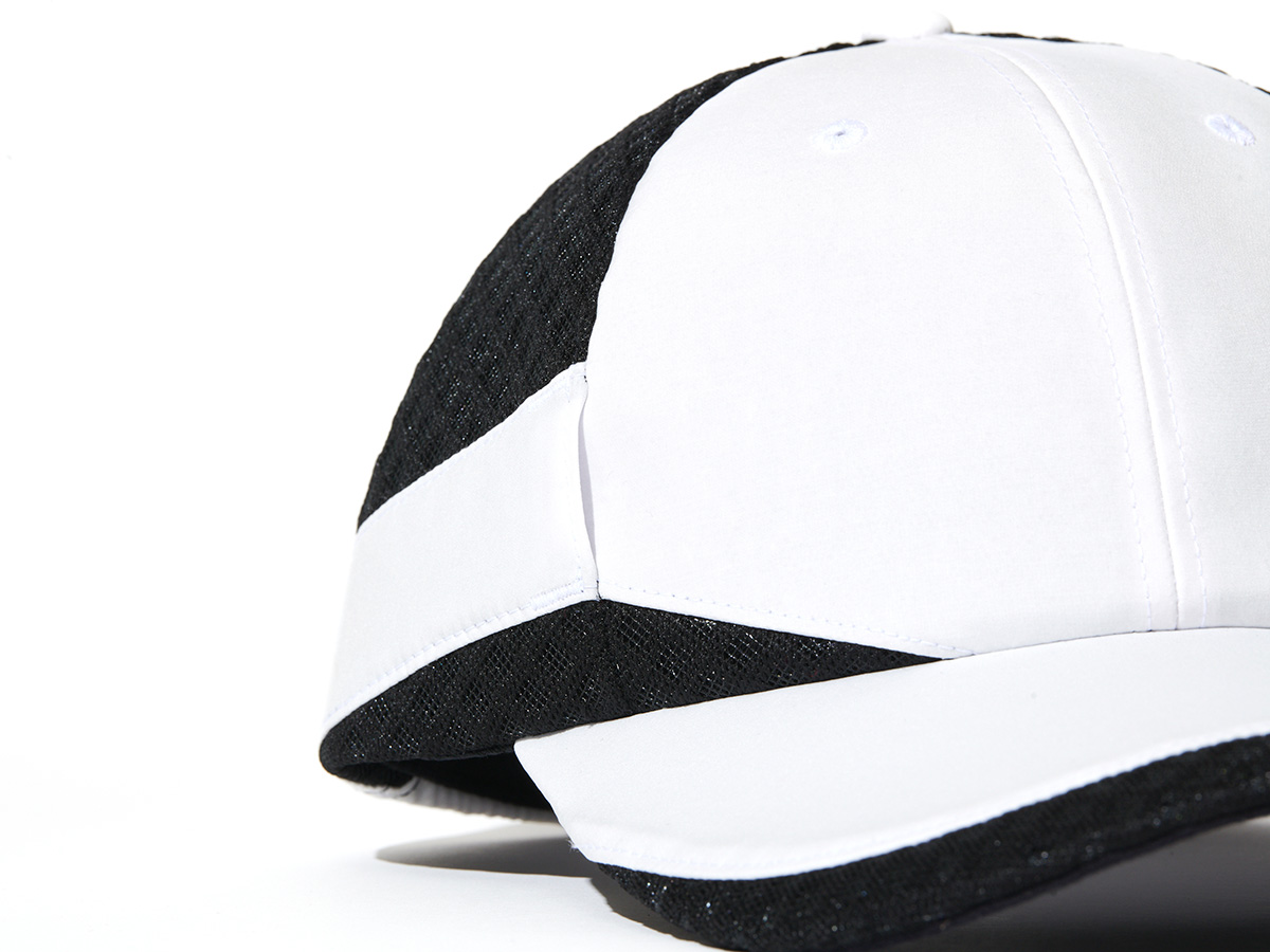 異形メッシュと撥水生地を組み合わせた汎用キャップ。