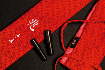 竿袋は新生「兆」のシンボルカラーである鮮やかな朱に幾何学的な模様を施した裏地付きの高級感溢れる仕立てとなっており、持つことの喜び、満足感をいっそう際立たせる。