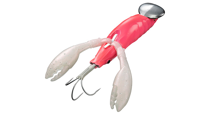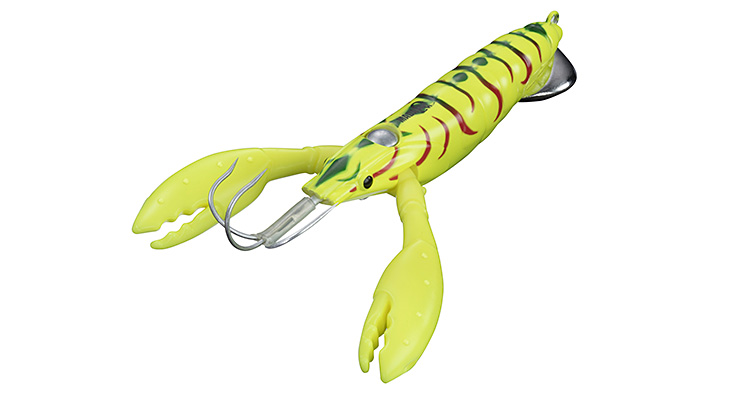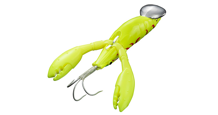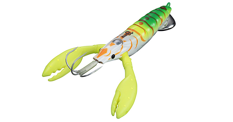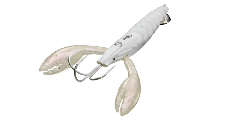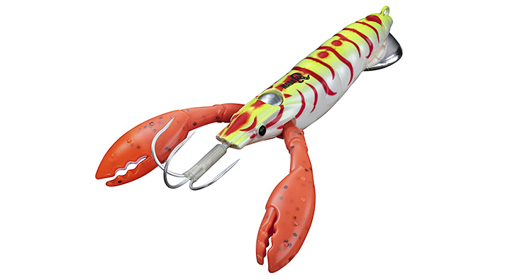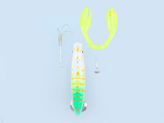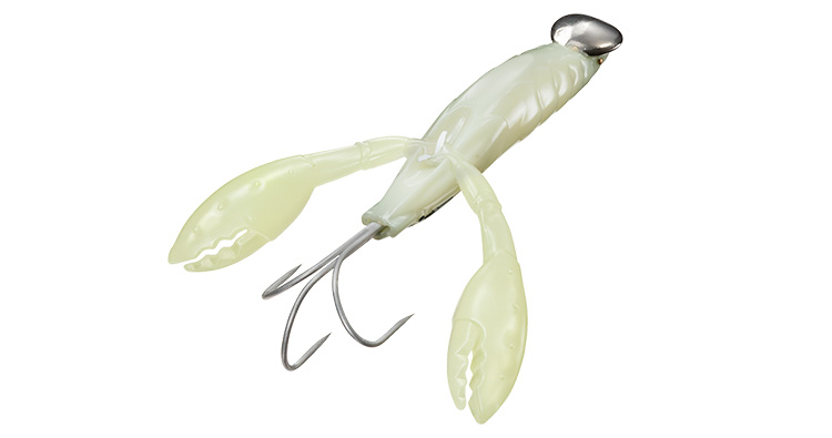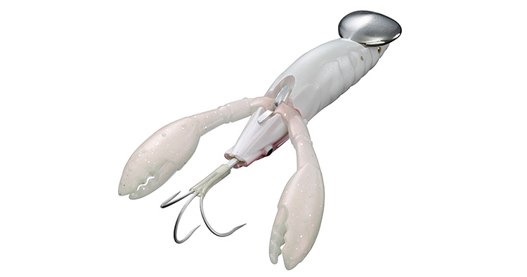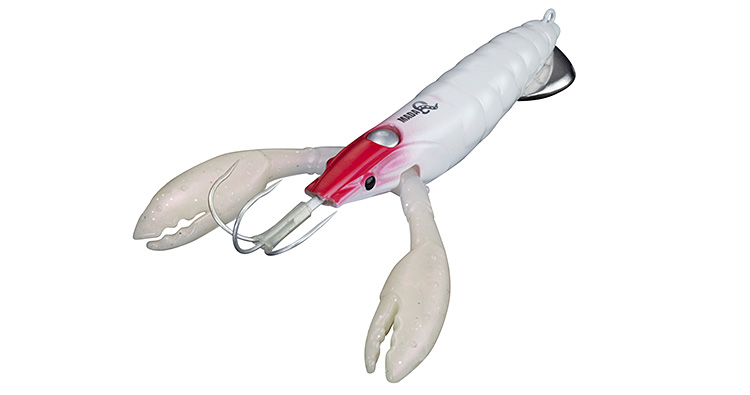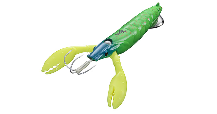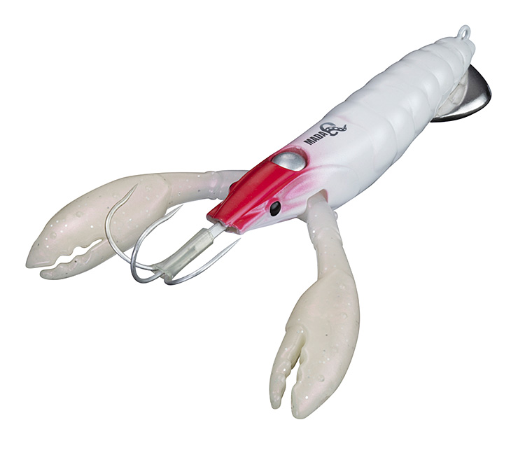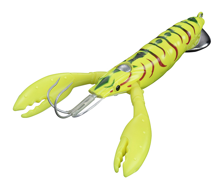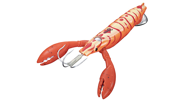 海底付近で尻を上にして浮き上がると、錘とルアーの間に入り込んで錘を抱いてしまいフッキングを逃すケースが多かった。そこで水中を漂いつつ、爪だけが激しく踊るアクションを追求。ミスフッキングを減らすことに成功した。