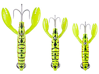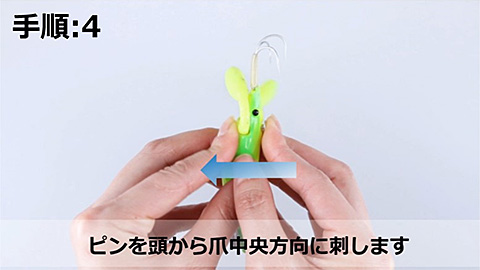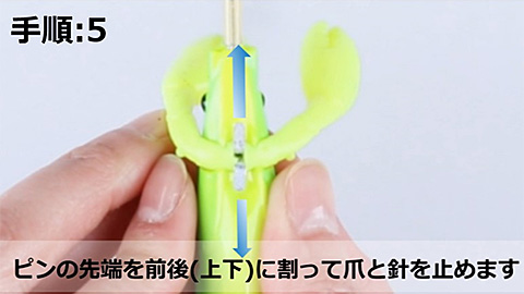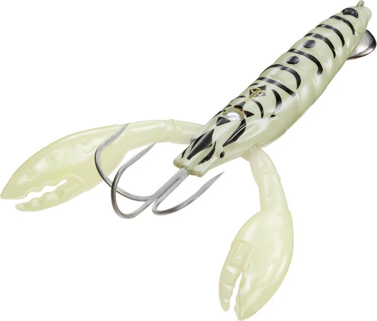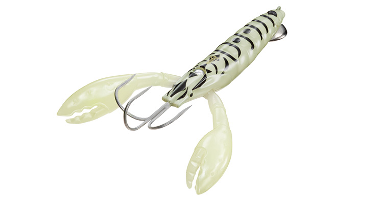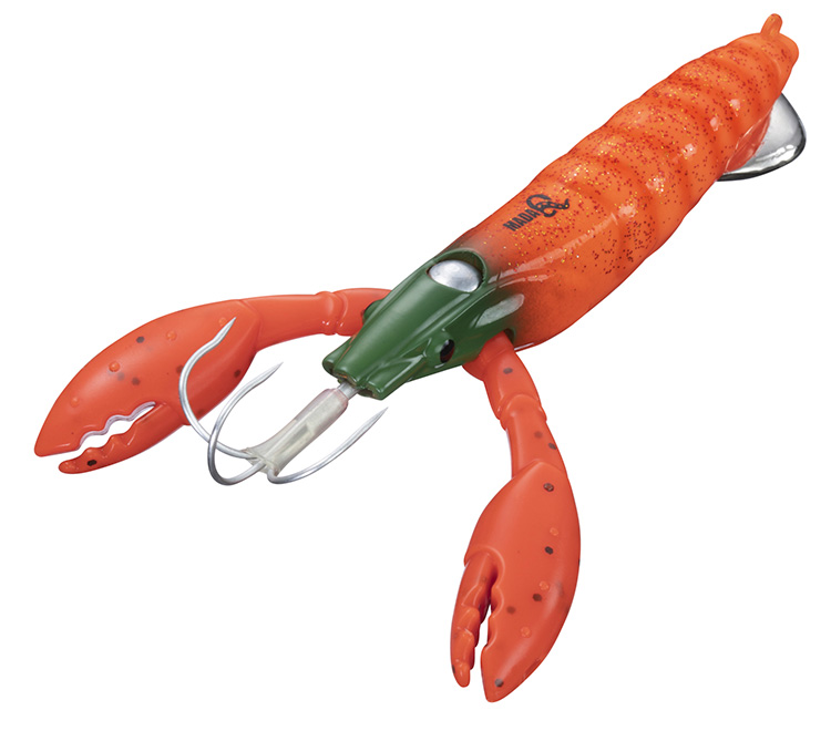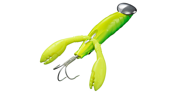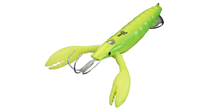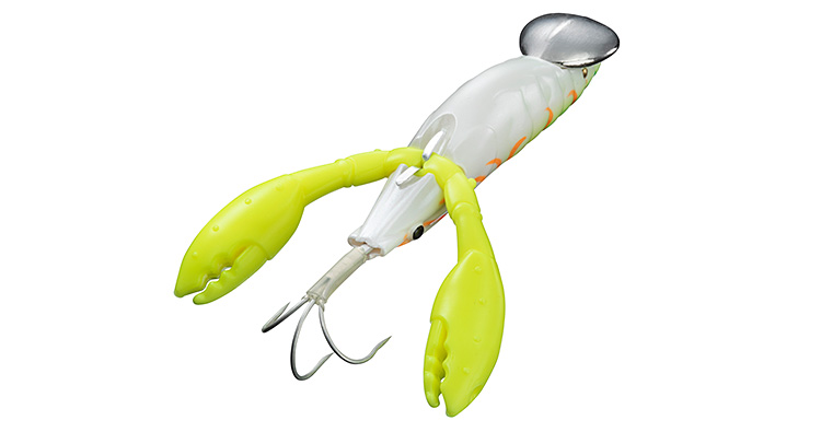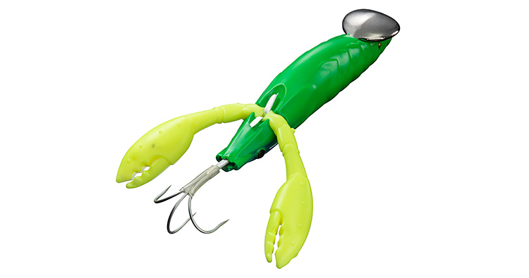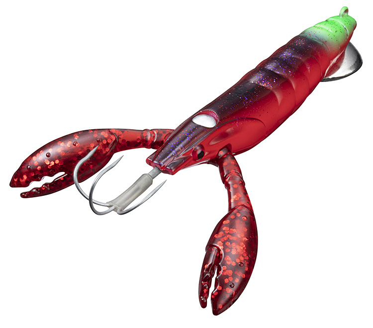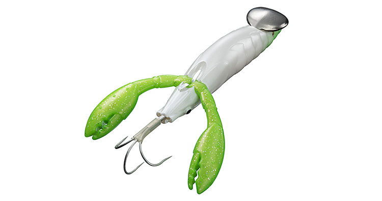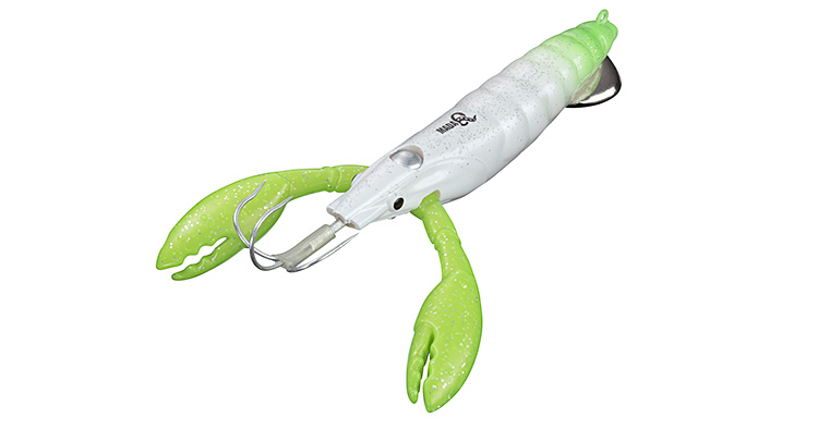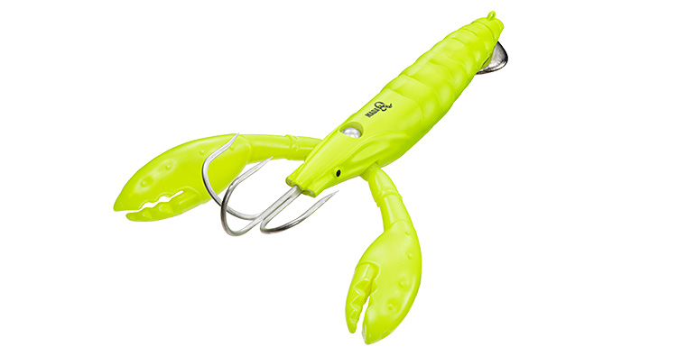 海底付近で尻を上にして浮き上がると、錘とルアーの間に入り込んで錘を抱いてしまいフッキングを逃すケースが多かった。そこで水中を漂いつつ、爪だけが激しく踊るアクションを追求。ミスフッキングを減らすことに成功した。