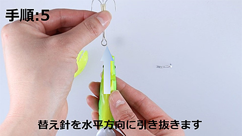 フックが曲がったり、先が丸くなったりしたら別売のフックで交換可能。爪は既存の4色に加え、更に4色の計8色が、6月に発売予定。爪だけ現場で付け替えられるので、同船者が急に別のカラーで喰いだしたときなど、爪だけ交換して対応可能。