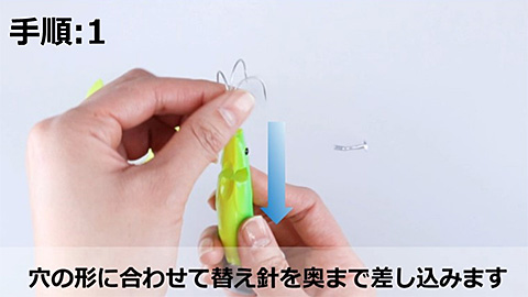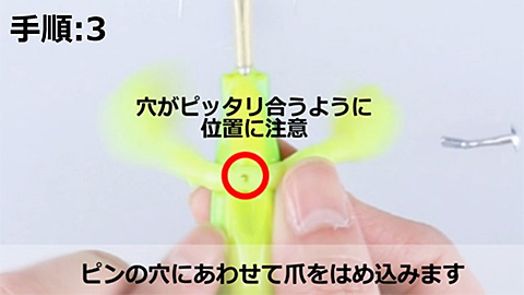割りピン1本で爪も針も簡単に交換可能。(PAT.P)