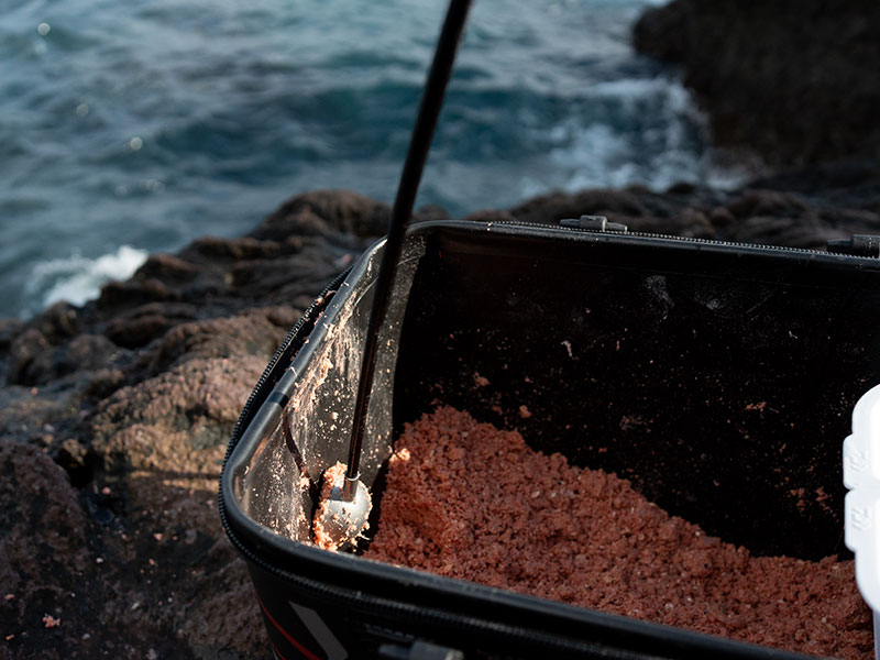 グレ釣り、チヌ釣りに置いて遠投が必要なシチュエーションでは、ヒシャクのカップにコマセを圧縮する必要があります。投げるコマセを硬くすることで遠投が可能になります。
