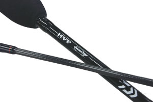ロッド性能に最も影響を与えるカーボンシートにおいて、ダイワはカーボン繊維そのものの高弾性化はもちろん、カーボン繊維を取りまとめる接着剤的な樹脂(レジン)量に着目しました。贅肉とも言えるレジンの量を減らして代わりにカーボン繊維の密度を高めた「高密度HVFカーボン」はより筋肉質でパワフル。粘りや強度を重視した竿に最適な素材となっています。