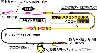 天井糸~上付け糸~水中糸~下付け糸~ハナカン仕掛けのセット。