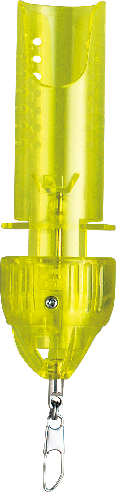人には見やすく、魚には見えにくいカラー。小型のMサイズは見やすいイエロー、大型のL、BIGは水中に溶け込んで魚に警戒心を与えにくいスモーク、レッドカラーを採用。