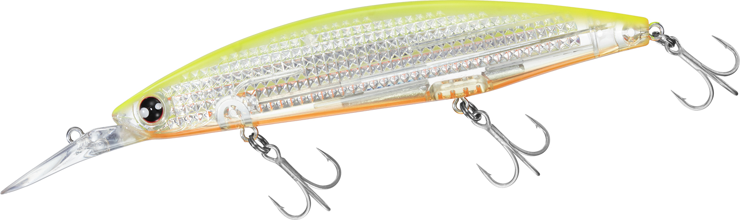 こだわりの「釣れるハイピッチタイトウォブンロールアクション」設定。タダ巻きのスローリトリーブでもしっかりした引き心地とワイドボディによる「強烈なフラッシング&波動」を発生。また、ただ巻きのみで、流れの変化等で自動的に生まれるイレギュラースライドアクション(食わせの間)も継承。
