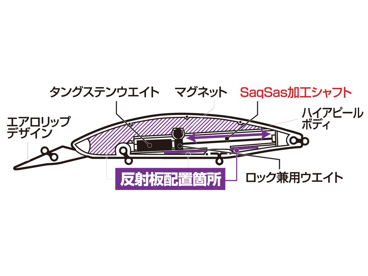 レーザーインパクトは、3Dマルチ反射構造により「イワシ」等と同様の高輝度反射光を多方向に放ち、「本物の誘いを遠くまで」を実現。