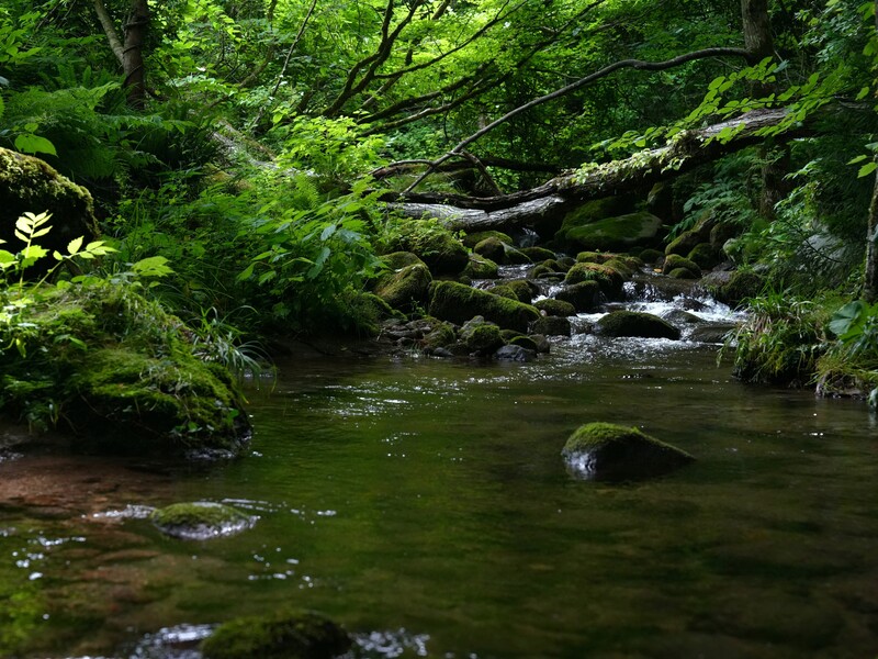緑のアーチを潜り、木漏れ日が差し込む小渓の流れを心地よく釣っていく。変化に富んだ流れ、倒木や岩には苔が生し、僅かなピンスポットに渓魚が潜む。木々をかわしたテクニカルキャスト、ショートレングスを生かしたダイレクト感ある取り回し良いロッドでテンポよく釣っていく。オーラム48ULはサイド、バックハンドキャストが特に心地よいロッドに仕上がっている。調子はレギュラーアクション。やや細身で良く曲がるが、SVFカーボンの恩恵でブランクスには密度感がありシャープ。キャストは予想したよりも伸びる。サイド、バックハンドでストレートに抜ける軌道がとにかく心地よいロッドである。パワーはUL。水深50cm前後の小渓を軽快に楽しむにはぴったりのパワーバランス。 源流、沢、小渓流のピンスポットを射抜く正確性。ルアーを緻密に操り、点で喰わせ、掛ける操作性。4’8”に求められる要素を凝縮したエキスパートモデル。 |