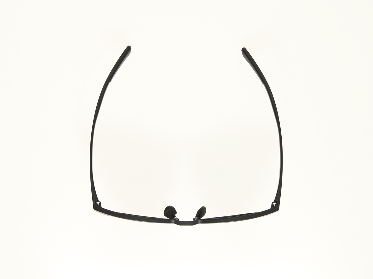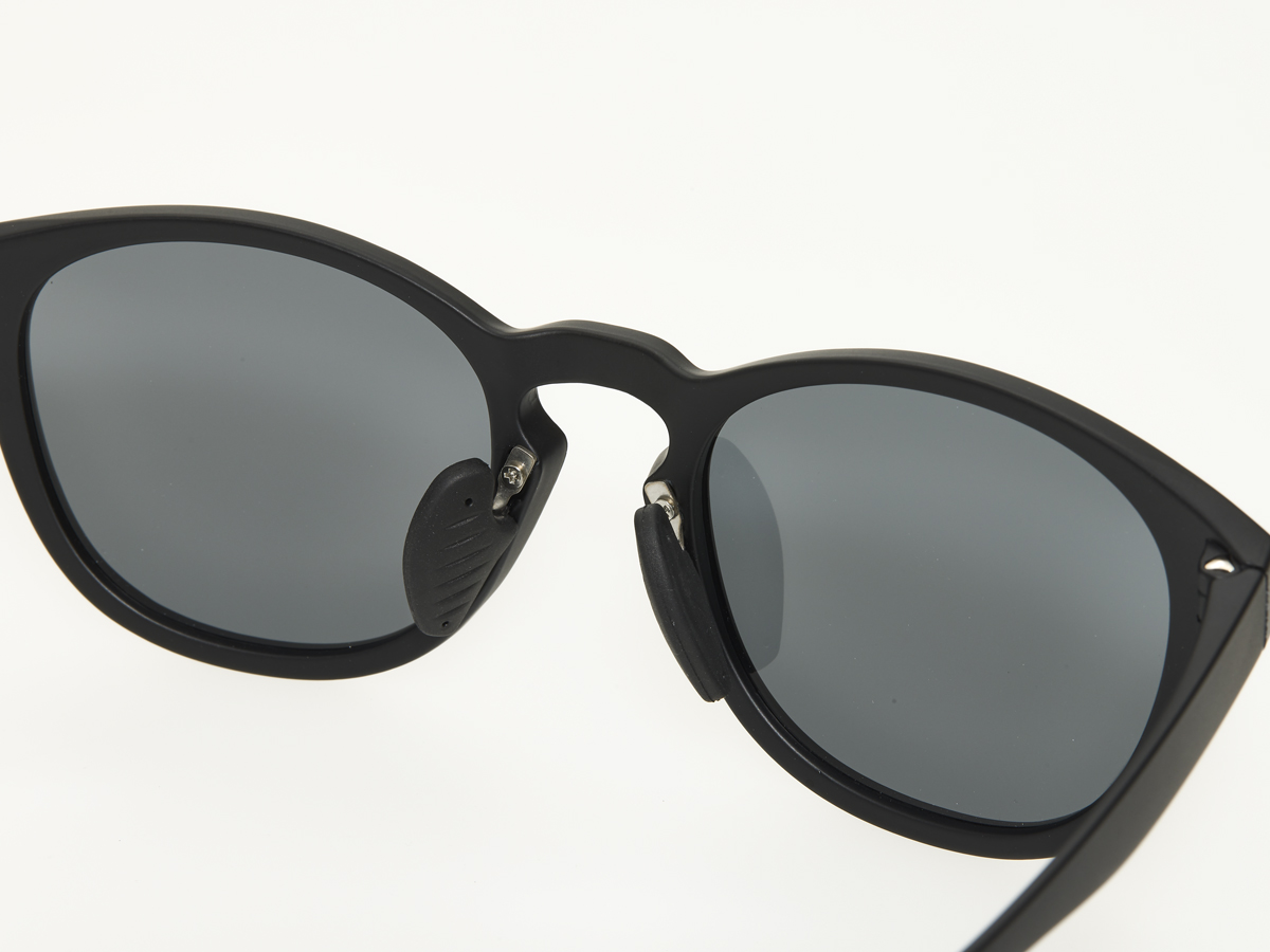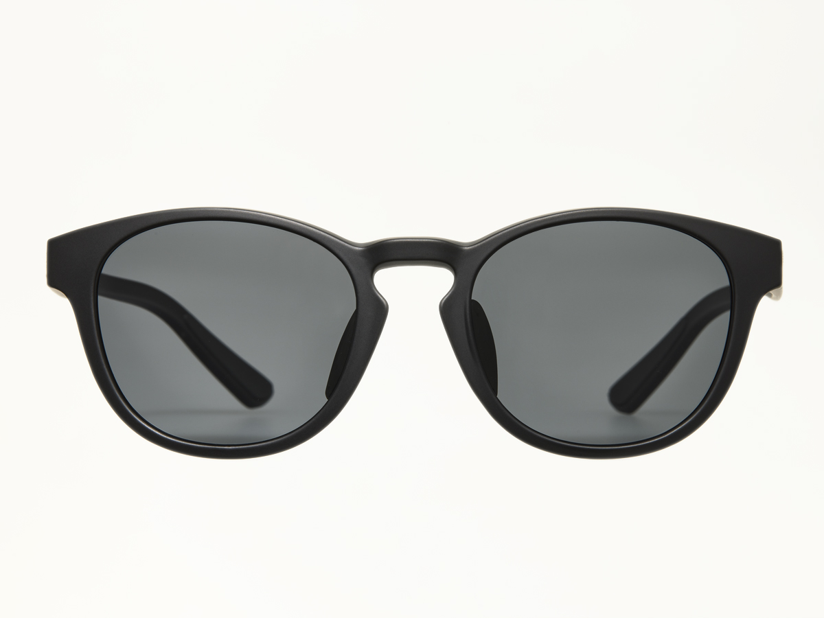 万人の顔に合いやすいボストンタイプ。テンプルは耳にあたる部分を湾曲させた形状で、耳にかけたらズレにくい設計になっており、可動する鼻パッドは調整可能。テンプル先端の肌に当たる箇所には滑り止め搭載し、テンプル自体も柔らかめで、自然なかけ心地。フレームカラーは傷が目立ちづらいマットブラック。レンズカラーはグレーとグレーレッドミラーの2種展開。