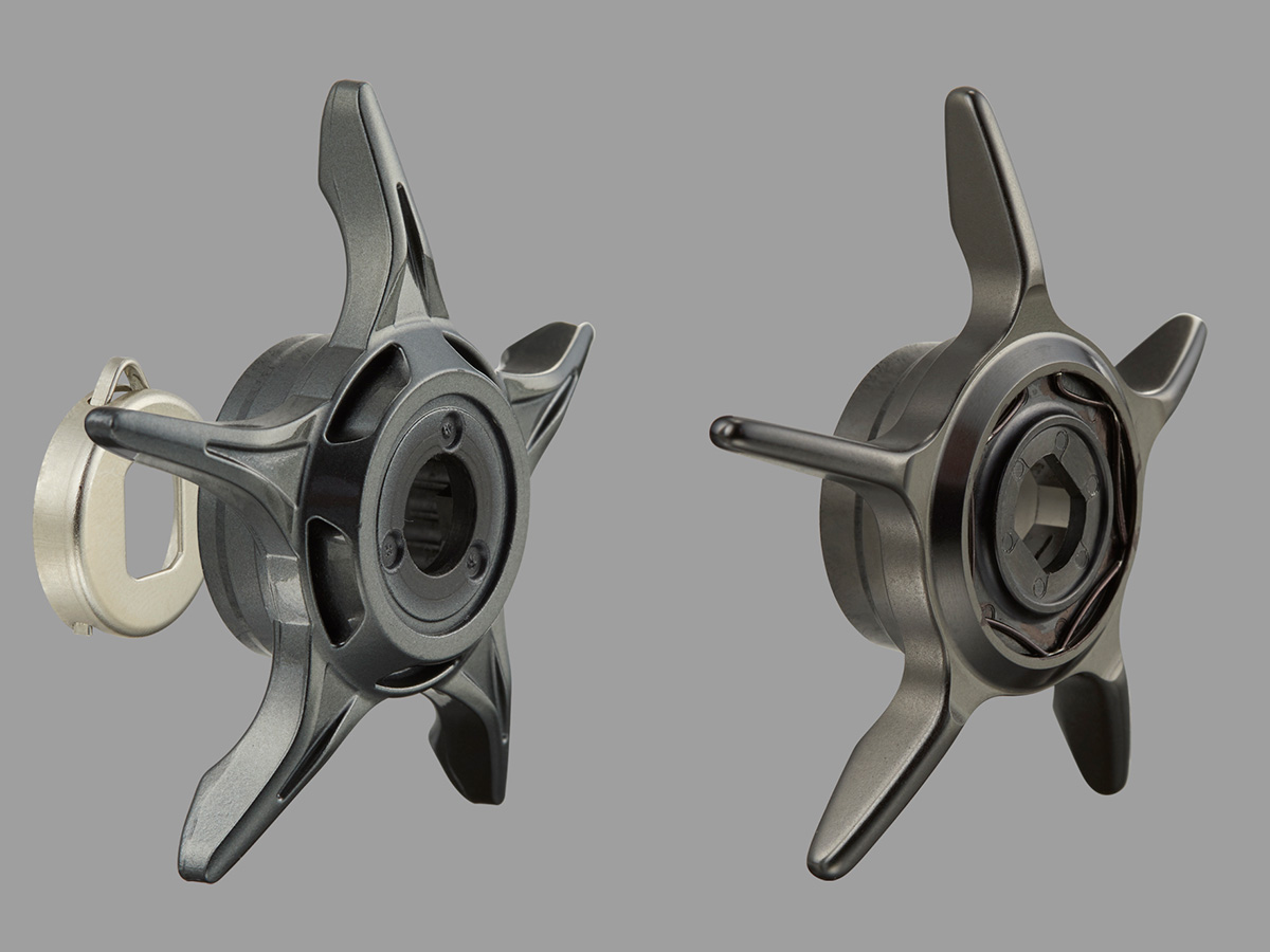 内部構造を高剛性、高精度でしっかりと支え、精緻な巻き心地とパワーを生む筐体システム。要であるフレームに金属素材を用いることが必要条件で、サイドプレートやセットプレートとの組合せにより、基本性能をさらに長く発揮し続けることを可能にします。