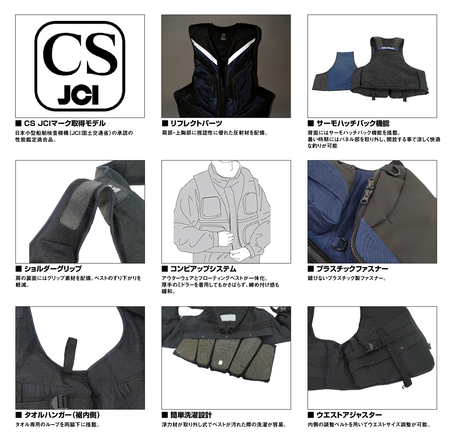 磯釣りを徹底追及した各種機能をプラス。ハードなシーンにも対応の強靭な磯フロートベスト登場。CS認定品(L2)