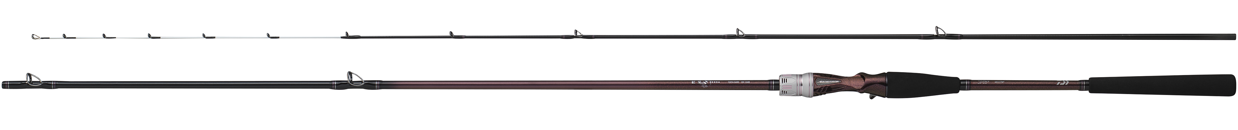 まずは穂先。本作から穂先部に軽量なカーボンソリッド「メガトップ」を採用することで目感度が大幅に向上に成功した。そしてブランクには「X45」を搭載し、パワーロスとなるロッドのネジレを防ぐことで真鯛の硬い口にフッキングするために必要なパワーと軽快な操作性を備えた。リールシートにはダイワオリジナルの「エアスラッシュシート」搭載でロッド全体の軽量化にも繋がり、握りやすい形状から操作性が非常に高いロッドに仕上がった。