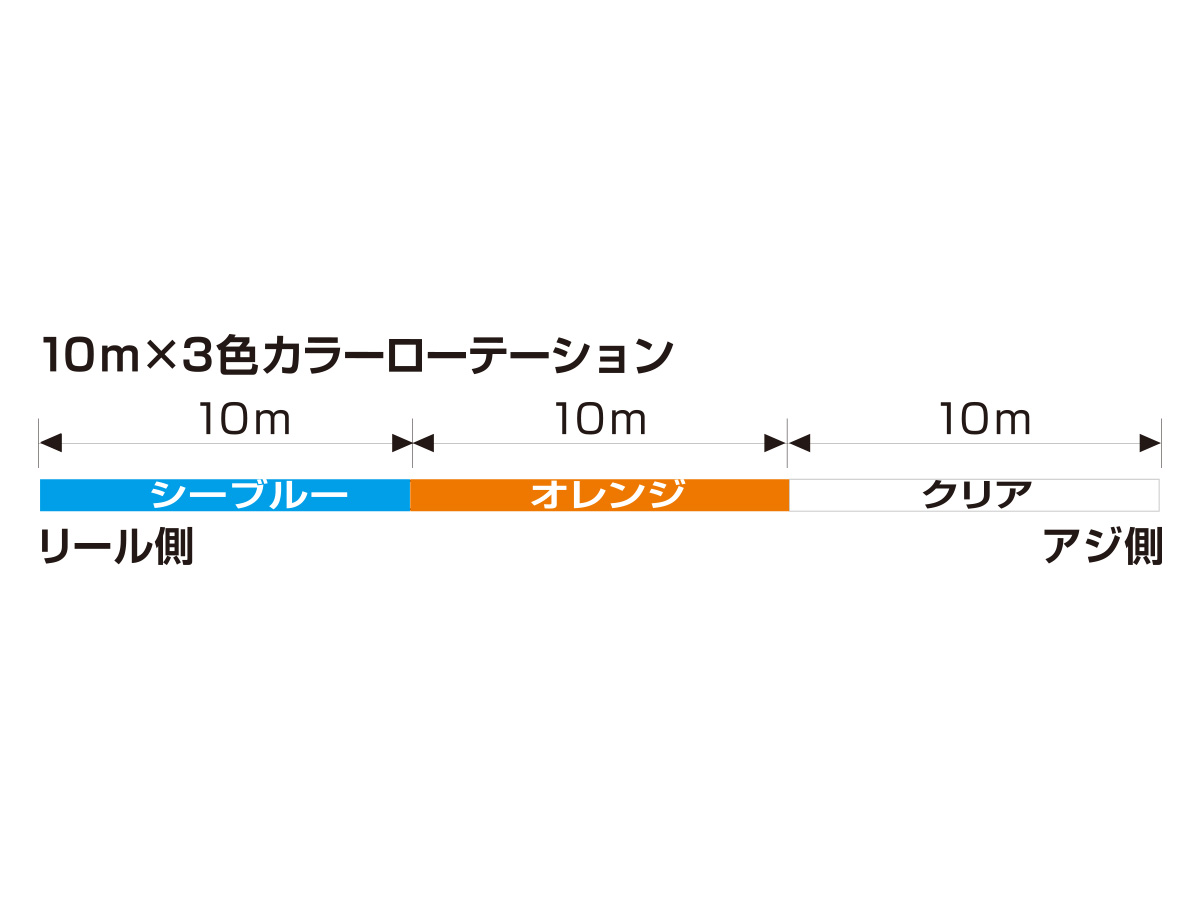 10m×3色カラーローテーションとなっており、狙ったポイントへアジを誘導しやすく、ヤエン投入のタイミングをサポート。