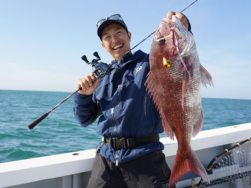 ブランド名の由来は、鯛をイメージした美しい“紅色”と獲物に食らいつく鯛の鋭い“牙”。我々を魅了してやまない特別な魚だからこそ、敬意と真剣勝負の駆け引きで鯛との真っ向勝負に挑む。「紅牙」には、そんな想いがこもっている。その領域はタイラバとタイテンヤ。どちらも一尾の鯛に向き合い一対一の勝負に挑むスタイル。「より確実に掛け、そして獲る」そんなアングラーの想いに応えるため、DAIWAは釣りを研究し、具現化する。