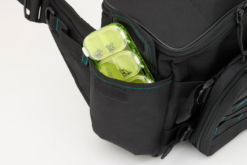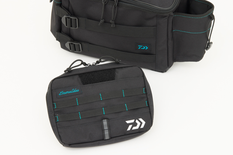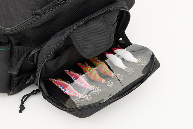 収納容量をコントロール可能な着脱式フロントポケット装備。フロントポケットを取り外してそれぞれをバッグ、エギホルダーとして使用することも可能。