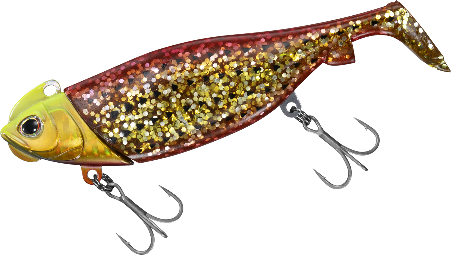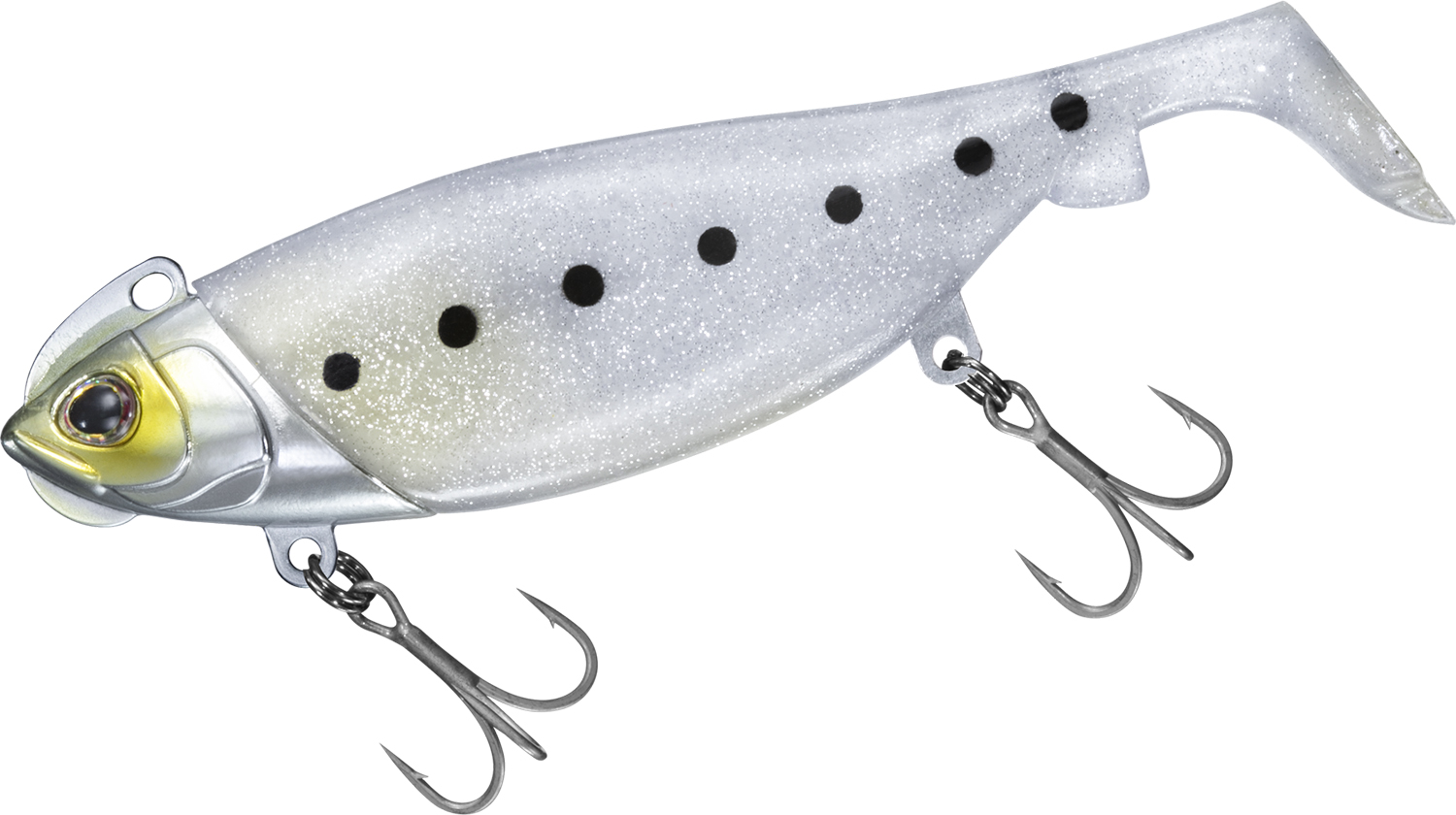 水鳥の足ヒレ形状からヒントを得た「ダックフィンテール」を搭載。その独特の形状は水 つかみが良く振り子状に大きく左右にスイングする為、強いバイブレーション&ロールアクションを発生。