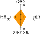 粒子がキメ細かく、グルテン量が多いので抜群のハリ持ち。
