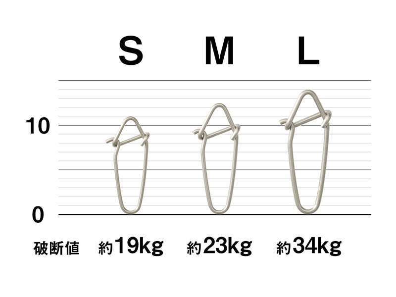 強軸ステンレスならではの耐久性が従来より大きな開閉角度を可能とし、シンカーを付けた状態でもアイに通しやすく、ストレス無く使用可能。