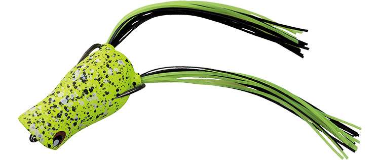 中空フロッグとしてはほぼ最小クラスに属するであろう、ボディ全長38mm・6.2gの超コンパクトボディ。より小さなベイトフィッシュを演出できるだけでなく、野池や小規模リザーバーなどでバスがメインベイトとしていることが多い『虫』を演出することが可能。CT SVなど軽量なルアーを扱うことのできるベイトタックルはもちろん、PEラインを組んだスピニングタックルでもその威力を発揮。