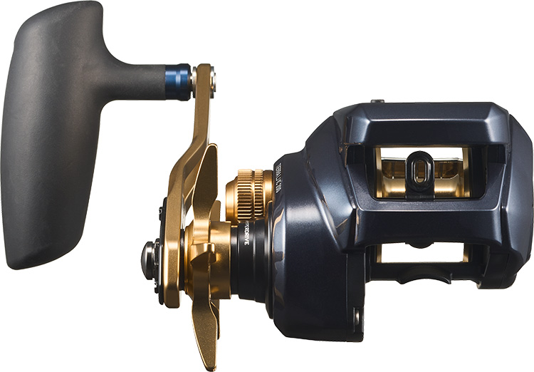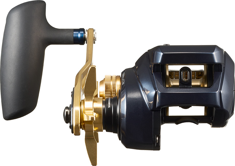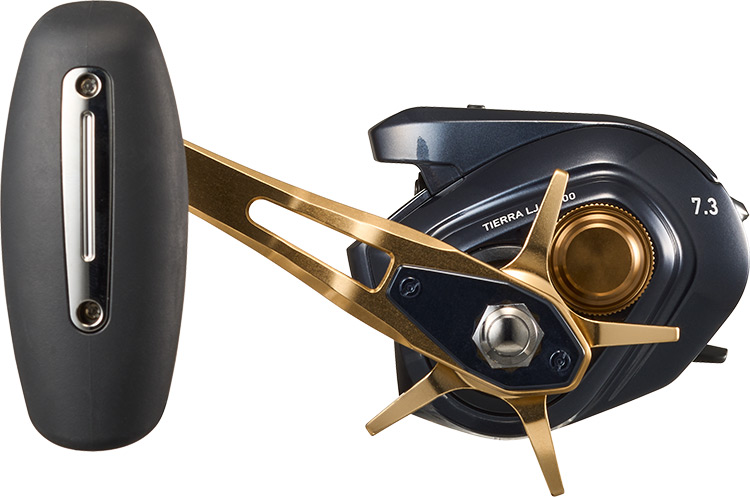 ワンピッチジャークでの青物など、様々なジギングシーンで使いやすいハンドルアーム長設定の75-85mmAL製クランクハンドルを搭載。テクニカルな操作性とダイナミックな巻き上げでターゲットをねじ伏せる。