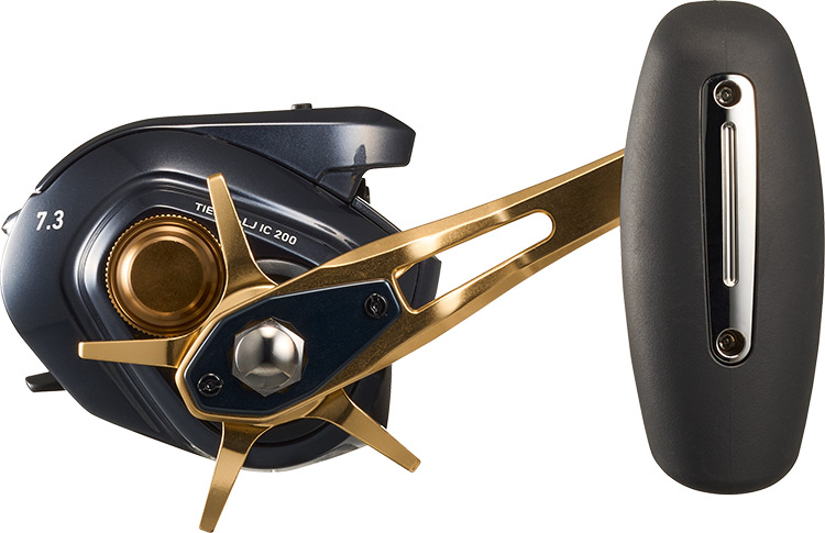瞬時に「クイック」な設定が可能なメカニカルブレーキノブ。通常より少ないノブ回転で設定を大きく変化させることができる。軽いアンダーキャストやジグの落下を素早く調整することが可能となった。