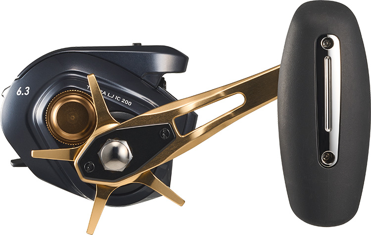 本シリーズでは、フレーム、サイドプレート(ハンドル側)、セットプレートにアルミニウム合金を採用。 21SALTIGA IC 300に引けを取らない、高い巻上げ性能を実現した。