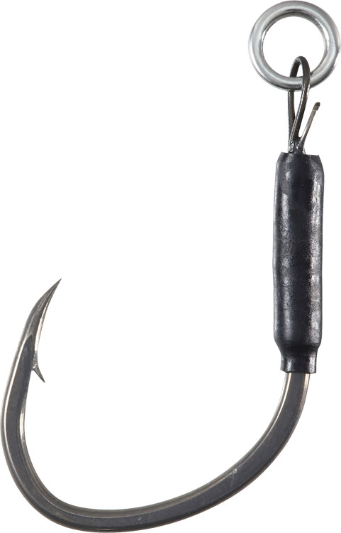 ロングテーパーポイントでフッキング性能が高く、平打ち加工で高強度。実績の高いソルティガライトアシストフック太軸を採用。驚異の貫通力サクサスメッキ加工。