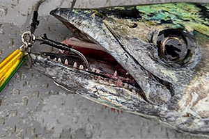 私のホームの伊勢湾では主にサワラ、真鯛、青物など季節の魚がターゲットになります。その中でも人気の一つサワラ、このサワラは歯が鋭くアシストラインをものの見事に切っていきます。