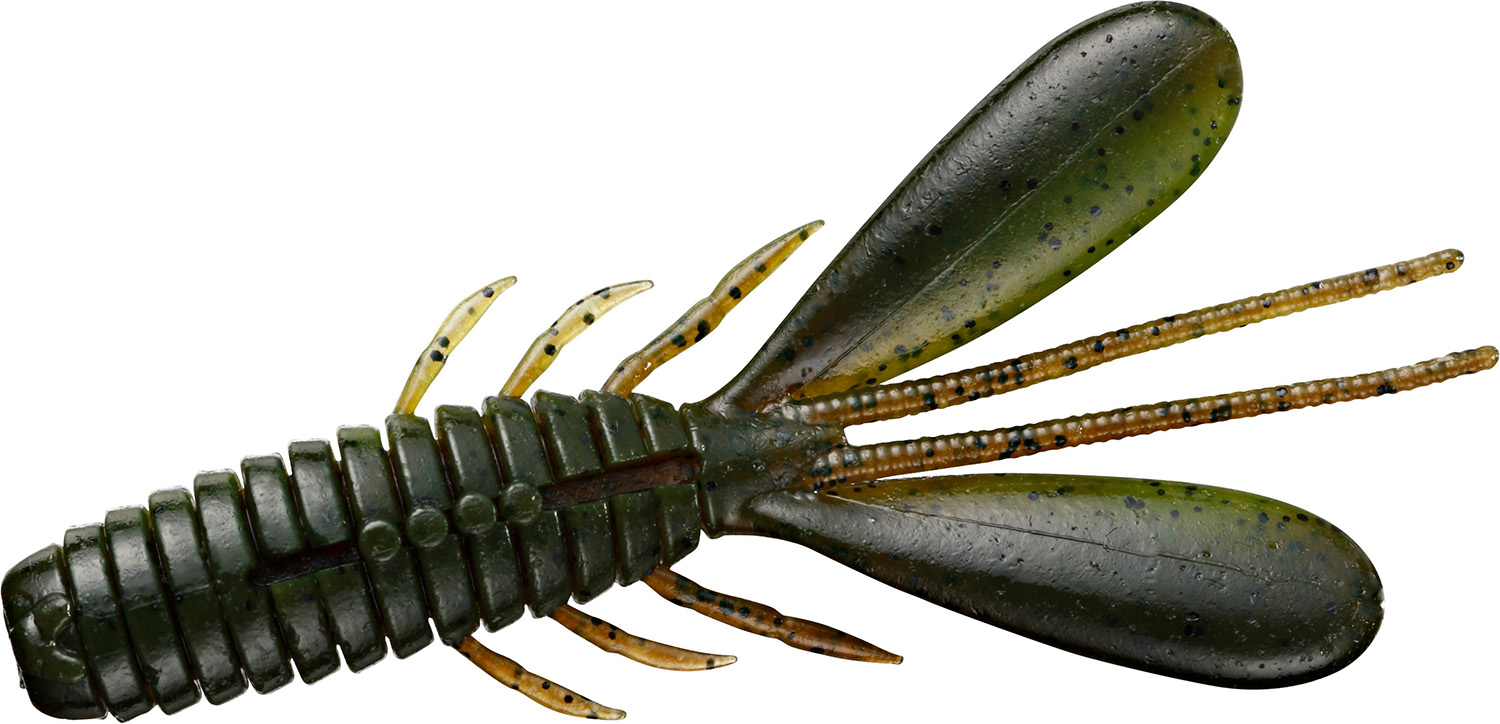 ムーブベイト譲りの深溝逆リブボディは艶めかしいアクションに貢献。フッキング時もリブが潰れるため、バイトへ持ち込みやすい。爪は敢えてオーソドックな形状とすることで、ホグ本来のアクションを損なわない設計とした。フリーリグやジグストに相性が良く、アクションの余韻で魚に口を使わせる。