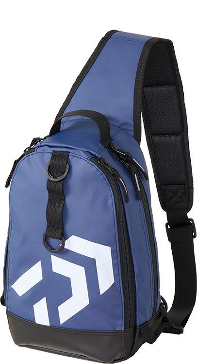 左右どちら側にも取り付け可能な幅広ショルダーベルトを備え、バッグを前に持ってくる際に引っ張りやすい引手ベルト付き。メインルームには中型ボックス(約21×15cm程度)を2~3個収納可能で、小物類を分けて収納できるフロントポケットも付いており、さらに、プライヤーホルダー、Dリング、ベルトループを装備し、バッグ全体には水に強いPVC表面生地を使用(フレンチネイビーP、ブラックPのみ)。背面には蒸れに強いメッシュパッドを採用。