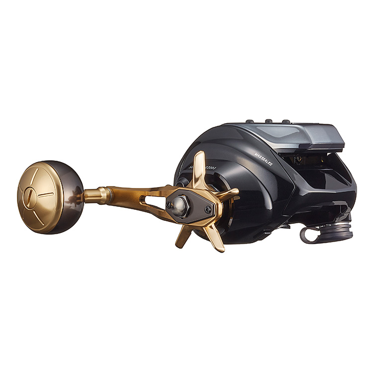 SEABORG 300Jをベースに更なる高耐久を実現したTOUGH LIGHT MONSTER。 心臓部にはMAGMAX-Gモーター(3年保証)を搭載し、ベースの4倍の耐久性を実現。 高耐久ブラシモーターだからレスポンスの良い回転フィーリングとパワーを生み出す。 また操作性においてはモーターON/OFF連動クラッチを搭載。 JOG巻上げ位置はそのままで、クラッチON時のレスポンスの良い立ち上がりと、 クラッチOFF時にはモーター停止によるフォール時でのアタリを捉える優れもの。 機能面では「ジギングモード」「デプスアラーム」「電子ドラグサウンド」を追加。 手巻きにおいて、ハンドル1回転83cm巻取長に、75-85mm可変ハンドルアームで SALTIGA両軸同等の誘いが可能。 レベルワインド内径3.0mmはショックリーダー30 号も通る安心設計。 ワンランク上のターゲットはもちろん、電動ジギングにも対応するタフセッティング。 自重575gは手持ちで快適であり、その軽さは感度に繋がる。