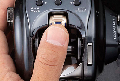 パワーレバーの位置をボディの中央に移動し、形状もレバーからジョグダイヤルスタイルに変更することにより、竿を握った手の親指一本で巻き上げやクラッチのオンオフを行えることで、空き手をレバー操作から完全に解放しロッド操作に専念できます。親指一本での自由自在な操作はレバーの微妙な操作を可能にし、巻上げスピードを意のままに操ることが可能になります。