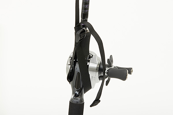 1.ループ状のベルトにロッドを挿し、リールフットで支える