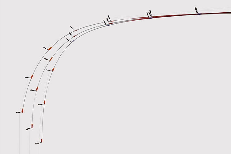 ■穂先硬さ違いの曲がりカーブ写真