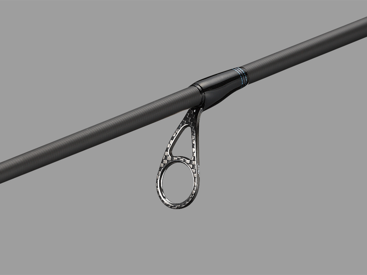 ガイドシステムには軽量・高感度な「AGS」を採用。高い剛性を誇るカーボンフレームがラインを通して伝わるかすかな信号をそのままブランクに伝えることで、従来になかった高感度が得られる。また、カーボンならではの軽さにより、ティップのブレの収束が速くなり、飛距離とコントロール性能も格段に向上。シャクるときにもブレがスッと収まり、メリハリの効いた動きを出すことができる。