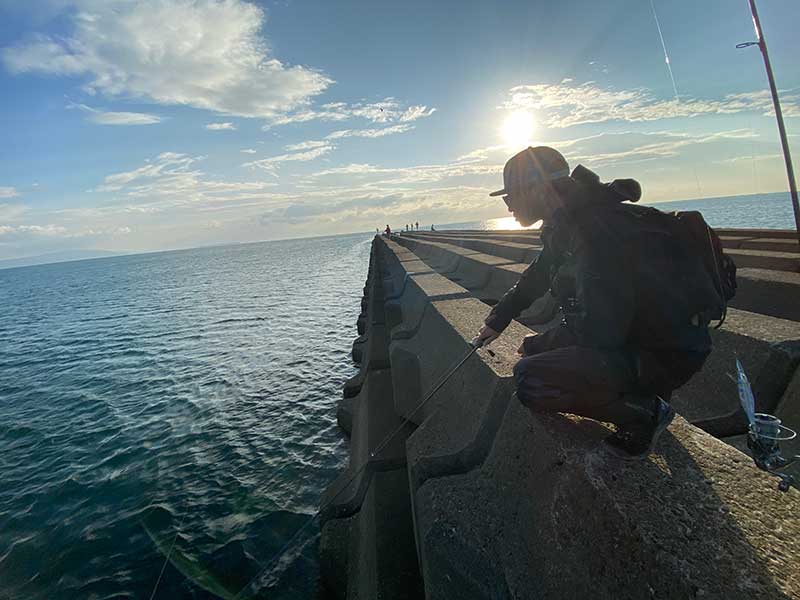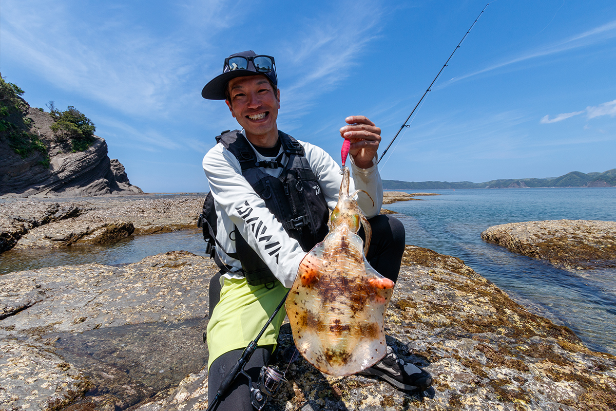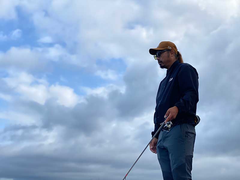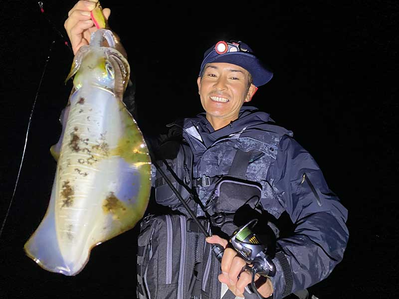 イカの居場所を探しだし安定した釣果を得ている。風を鋭く斬る強烈なシャクリ「サウンドジャーク」を武器に日々釣行に励むストイックなエギンガー。