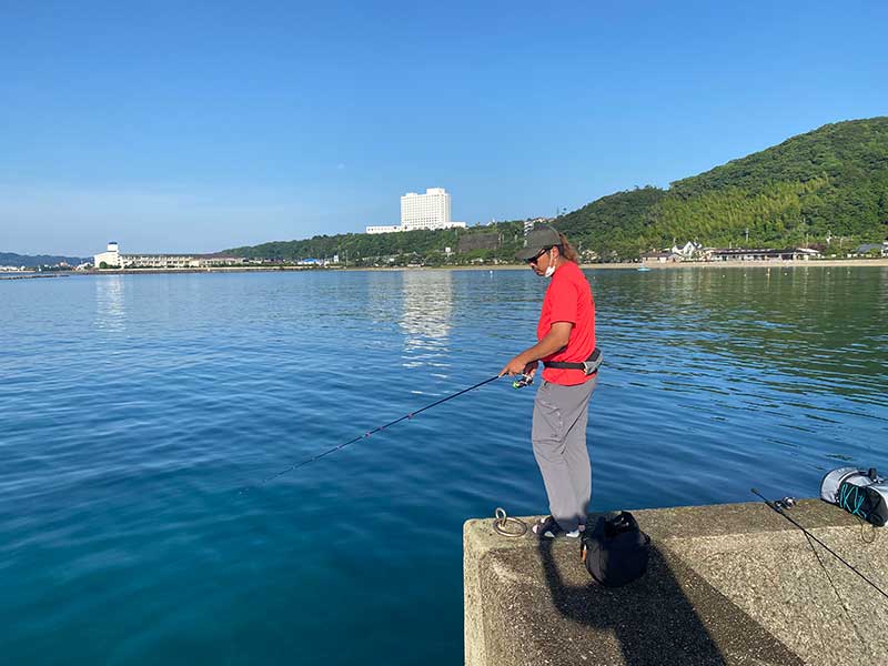 85 という長さを生かして、エギをより大きく高く跳ね上げるためのロッド。8 フィート半ばのロッドって、取り回しが悪かったり、風が吹いたときに煽られてシャクりにくかったりするのであまり使ってこなかったんですが、これは「こんなに気持ちいいもんなんや」って思えるほど使いやすい。8 フィートぐらいの感覚で軽快にシャクれるし、エギがしっかり大きく動くので、イカのアタリも明確に出ます。