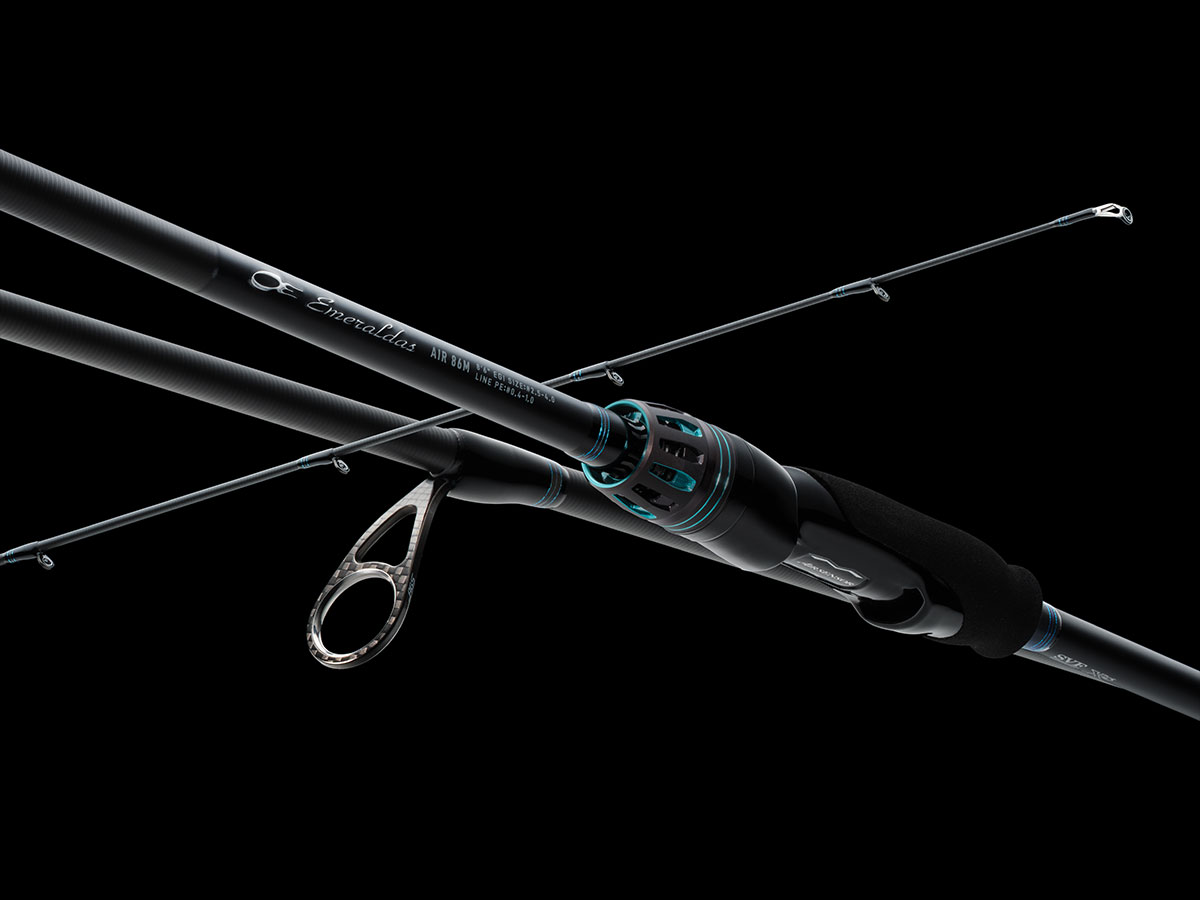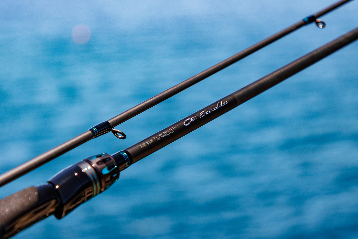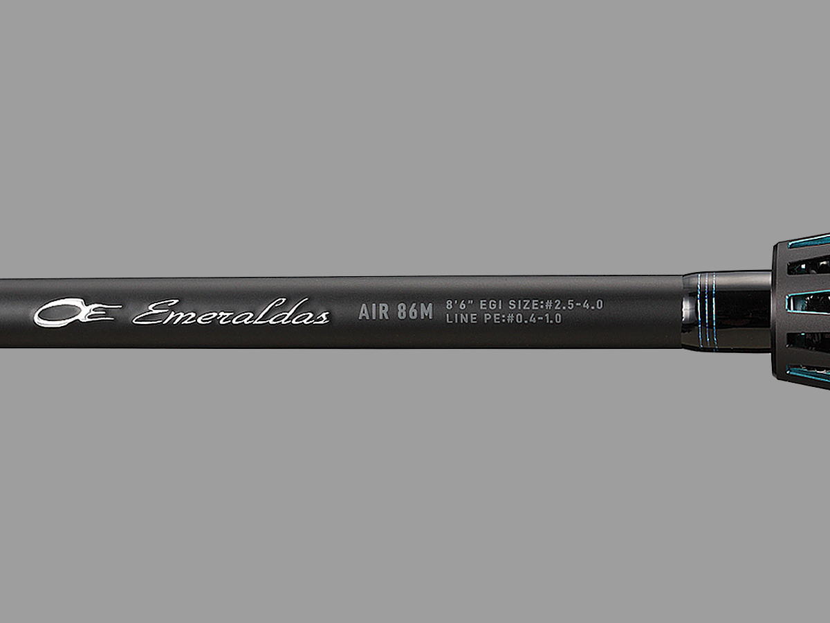 軽さにとことんこだわりぬいた「EMERALDAS AIR 」。その軽量性は大幅な感度の向上と疲れ知らずの操作性をもたらし、投げる・シャクるといった動き一つ一つに快感をもたらす。さらにその軽さは、アングラーの動作をあらゆる角度からサポートし、今までの軽さの常識を塗り替えながらその先をいく、まさに「AIR」を感じるロッドが完成。